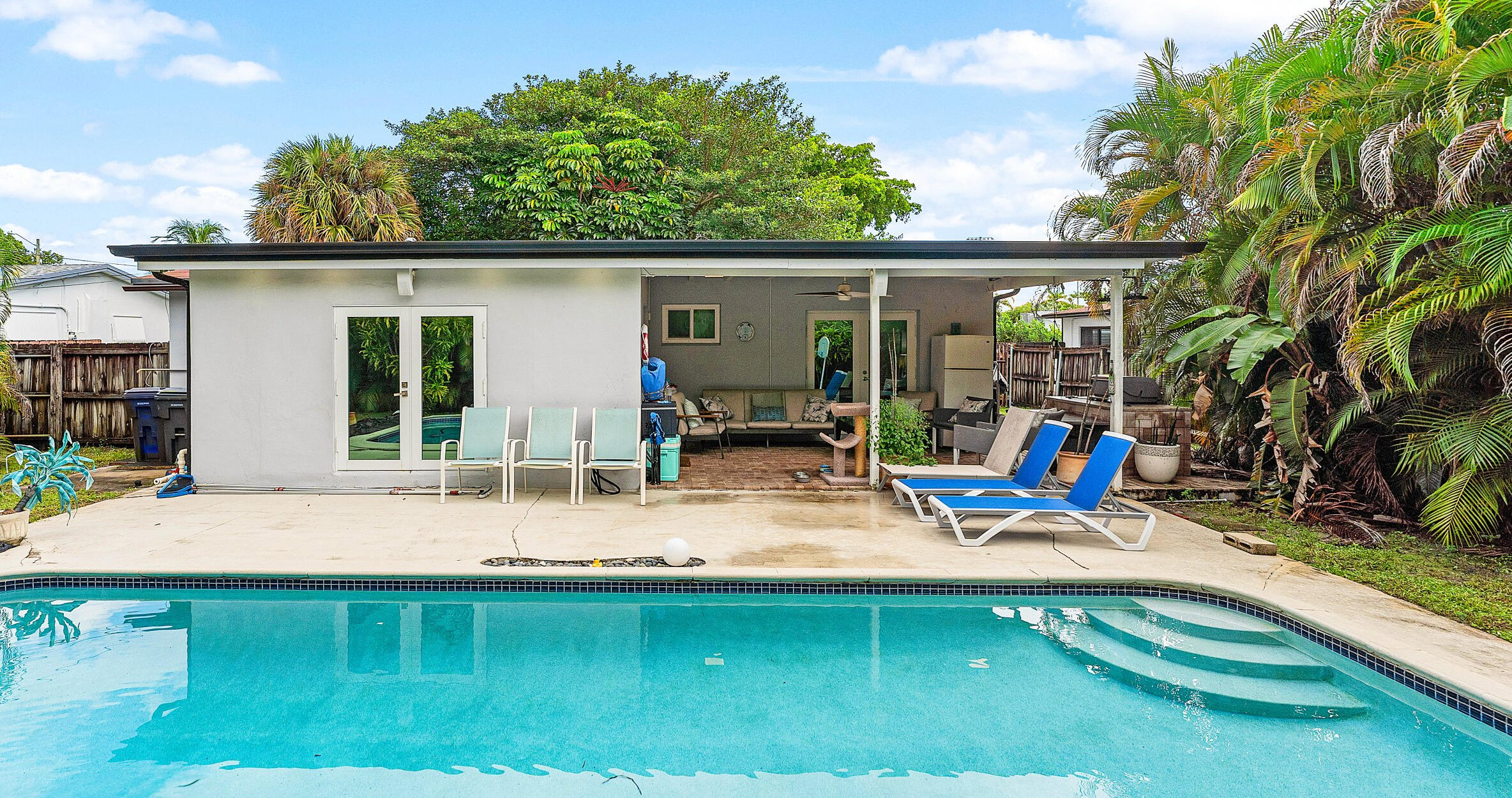 DescriptionContemporary 3/2 with pool in desirable Hollywood Hills. No HOA Motivated Seller. Updated kitchen with stainless, Island, ample storage, barn door access to large laundry room, French Doors lead out to the pool and porch with pavers and outdoor kitchen with built in grill. A/C smart thermostat ,impact windows, custom frosted doors and levers throughout, vinyl flooring throughout. Motion detector lighting. I 1 car garage with circular driveway. Roof and A/C 2016. Minutes from I95 and Hollywood Beach. Large lot approx. 9380 sq ft. TV and Speakers convey.